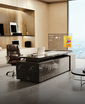 integrates high-definition visuals with transparency. In this setting, the transparent OLED goes beyond being just a screen, becoming an integral part of the room's aesthetic and enhancing the overall atmosphere.